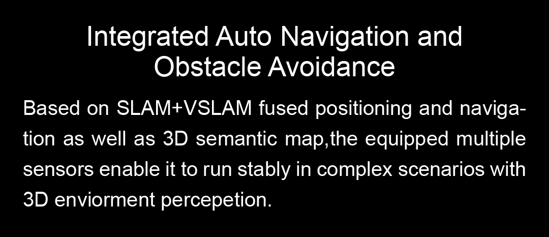 Based on SLAM+VSLAM fused positioning and navigation as well as 3D semantic map, the equipped multiple sensors